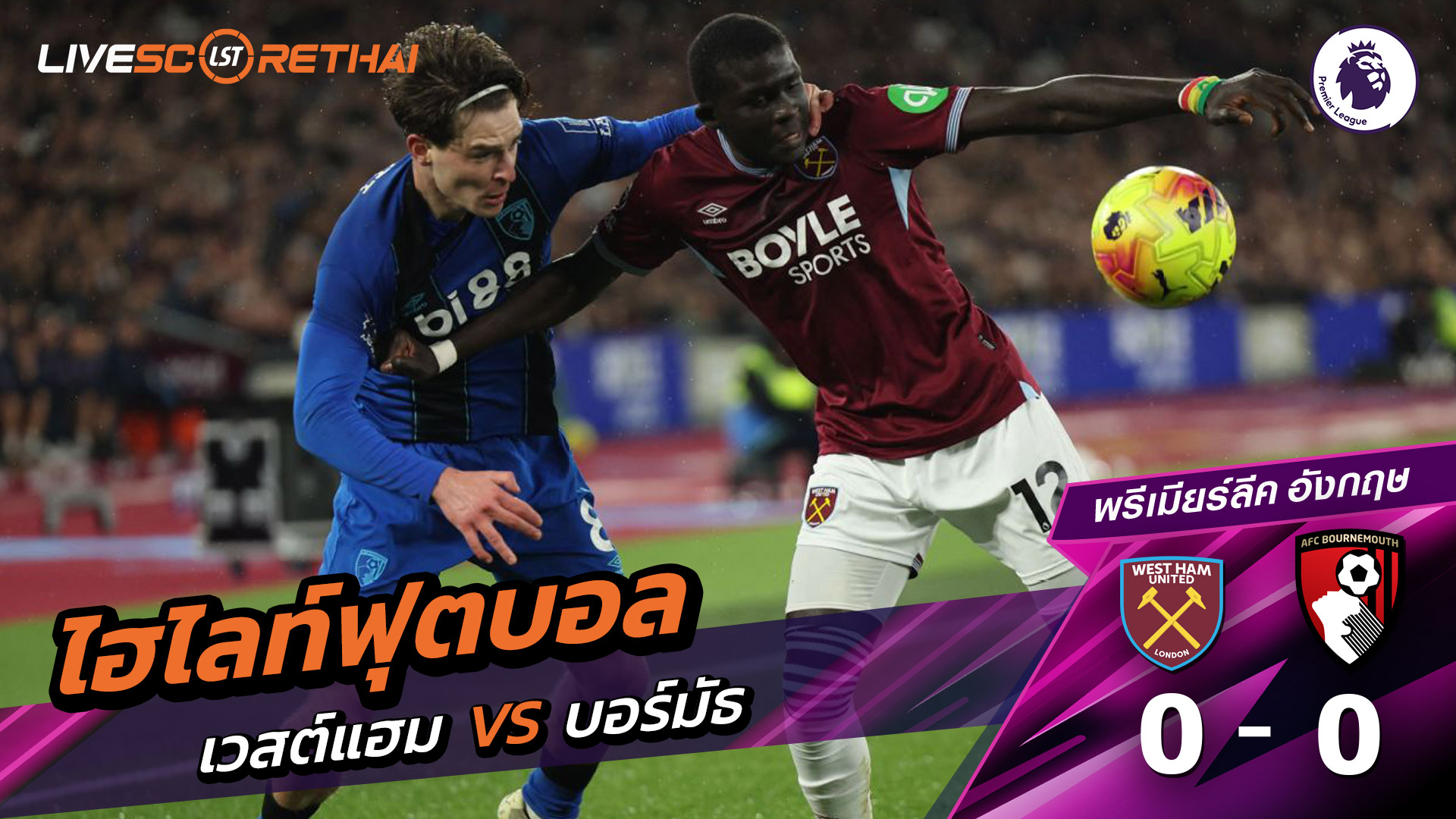 ดูฟรี ไฮไลท์ฟุตบอล พรีเมียร์ลีกอังกฤษ เวสต์แฮม VS บอร์มัธ ที่ www4.livescorethai.tv